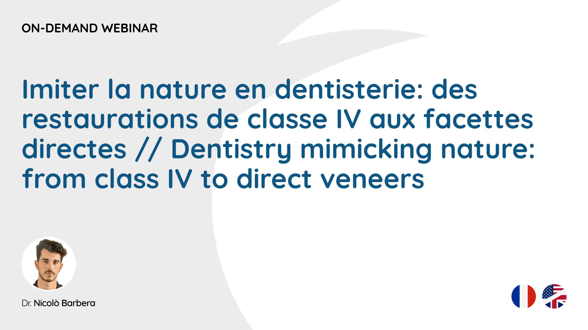 Imiter la nature en dentisterie: des restaurations de classe IV aux facettes directes // Dentistry mimicking nature: from class IV to direct veneers